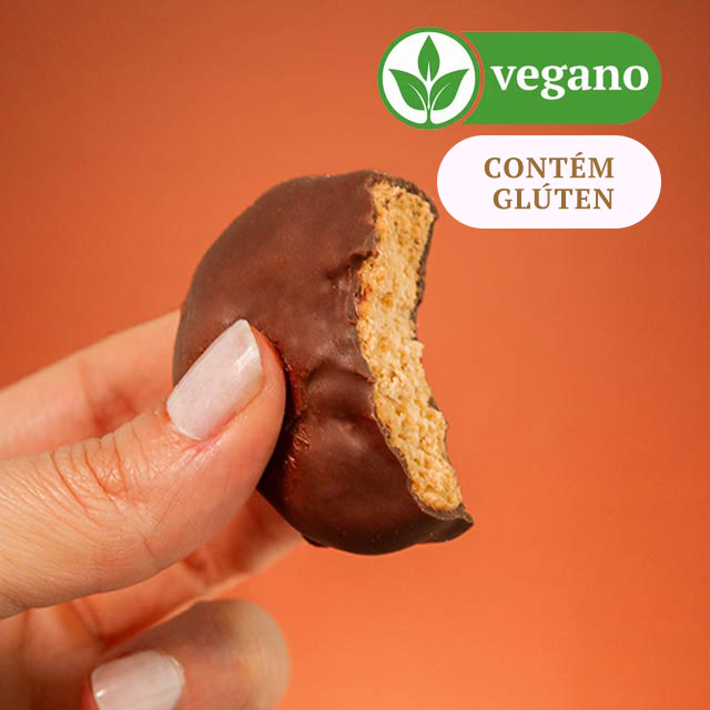 Imagine um biscoito crocante e saboroso, coberto com uma camada de chocolate 50% ao leite de aveia – tudo isso sem lactose, 100% vegano e feito apenas com ingredientes naturais de alta qualidade. É a combinação perfeita para um lanche saboroso e nutritivo.